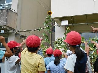 春に子どもたちが植えた種がこんなに大きくなりました。