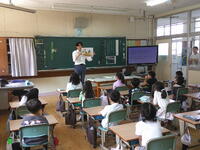 外に出て学ぶ校外研修とともに、先輩の先生の話や授業を見て学ぶ校内研修があります。今回、初任者の先生は、先輩の先生が行う、4年生の総合的な学習の時間の授業を参観しました。初任者の先生は、先輩の先生の授業から多くのことを学んでいました。