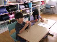 担任の先生が「2個のスイカを22人で同じように分けようと思うけど、どう切ればよい?」といきなりの算数の質問。近くの人と「こうやって切ればいいんじゃない?」「同じにならないよ!」と口々に意見交換をしていました。