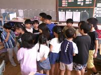 2年生の教室でスイカパーティーが開かれていました。1学期の終わりに学級花壇に植えたスイカがなっていたので、みんなで試食をすることになりました。子どもたちは自分たちが植えた苗からできたスイカに興味津々。今か今かと待っています。