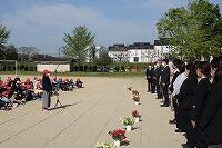 晴天に恵まれて、新任式と始業式を運動場で開催することができました。
