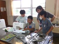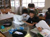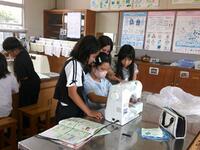 3~4人のグループに分かれて、交代しながら活動を行っています。初めてミシンを使う子どもがほとんどで、友達に「こうやっていけばいいんだよね」と聞きながら、慎重に作業を行っていました。