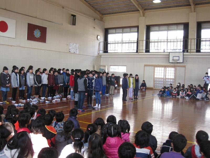 1年生~5年生から、6年生へ歌や劇などのプレゼントを贈りました。