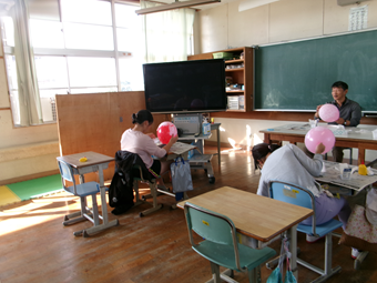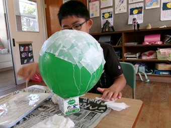 10月頃から、やまもものみなさんが ふうせんに半紙をペタペタ貼っては乾かし、