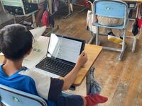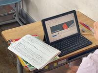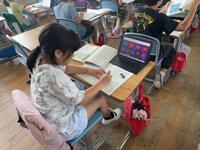 「春風をたどって」という教材を使って、子供一人ひとりが物語の続きで考えたことをタブレットに入力しているようです。タブレットのクラスルームという機能を使うと、友達全員が思っていることを共有できるので、「発表が苦手…」という児童も自分の考えを表すことができます。