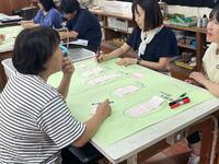 次に、児童が「主体的に学ぶ意欲」「自分で課題を解決する力」を身に付けるために、2学期以降にどのような取組を行っていくかを、グループに分かれて話し合いをしました。養護教諭の先生や事務室の先生など、直接、授業を受け持ってないけれでも、子ども達に関わっている先生も参加し、違った視点からの意見も述べてもらいました。その意見が確信を付いている時もあり、「なるほど…」とつぶやく先生もいました。