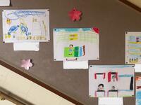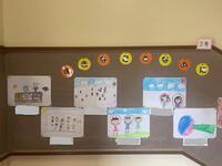 2年生の掲示板には「すきなこと なあに」というタイトルが。それぞれが好きなことを絵で表しているようです。