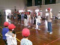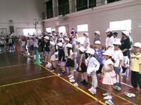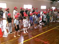 まず、本年度の運動会のスローガンが披露されました。本年度のスローガンは「超えろ 自分」。事前にアンケートをとったものを参考に、子ども達で話し合って決めました。できるだけ短いスローガンにすることで、みんなに覚えてほしいというねらいもあるようです。