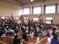 体育館で行われたお別れ集会では、交流を深めるために、川東小に関する〇✕クイズが行われました。全部で10問出題されましたが、正解が発表されるために、歓声と悔しがる声が聞こえてきました。みごと2名の児童が、全問正解!みんなが拍手でたたえました。