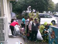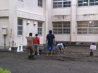 10月に行われる運動会を前に、親子で学校の環境整備を行うものです。日曜日で、あいにくの小雨にも関わらず、多くの保護者の方・児童が参加してくださいました。