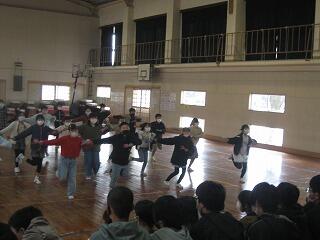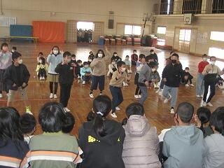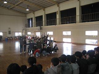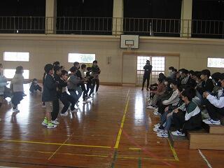 6年生を送る会の4年生の発表の様子です。鳴子を使った元気のよい踊りを披露してくれました。