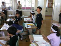 授業の途中では、主人公が見た風景の様子を、子どもたちそれぞれが動作で表す場面もあり、楽しそうに授業に取り組んでいました。初任者の先生は準備が大変だったと思いますが、とても落ち着いて指導している様子が印象的でした。