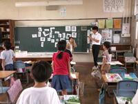 終了前日には、3年生のクラスで国語の授業を行いました。授業の前半は、漢字の「へん」や「つくり」などを分解したものを提示し、パズルゲームの要素を取り入れた学習活動を行いました。その後、漢字の成り立ちで同じような特徴があるものを分類させる活動を行いました。子どもたちはゲームを取り入れた活動をとても楽しそうに取り組んでいました。