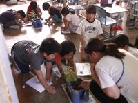 もう一方のクラスは、理科のホウセンカの観察の学習をしていました。理科での植物の観察は、花びらの枚数や色、葉・茎の形をきちんと見ているかがポイントなのですが、「校長先生、難しいです。」とつぶやく子どももいました。「うまく描くのは確かに難しいよね。今まで見てきた植物に共通してあるものは何かな?」と問いかけると、「花びら?葉っぱ?」と答えたので、「そうだね。その特徴をあなたの思ったとおり描いてみるといいね。」と伝えると、何かヒントをつかんだのか、ホウセンカの絵をよく見て、描き始めました。こちらのクラスも、「かんがえる」ができている児童が多かったようです。