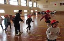 体育の授業で縄跳びが始まり、昼休み等でいろんな技に挑戦しています。今日は1・2年生の長縄大会が行われ、クラス全員で時間内にどれだけ跳べるかを計りました。どのクラスも目標回数を達成し、手を挙げて喜んでいました。