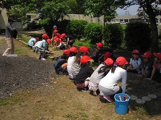 先日花壇を畑にした2年生。雨が続いてなかなか苗植えできなかった子ども達。