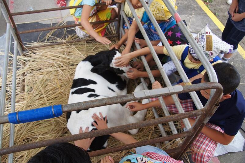 前日に産まれた牛を学校に連れてきていただき、