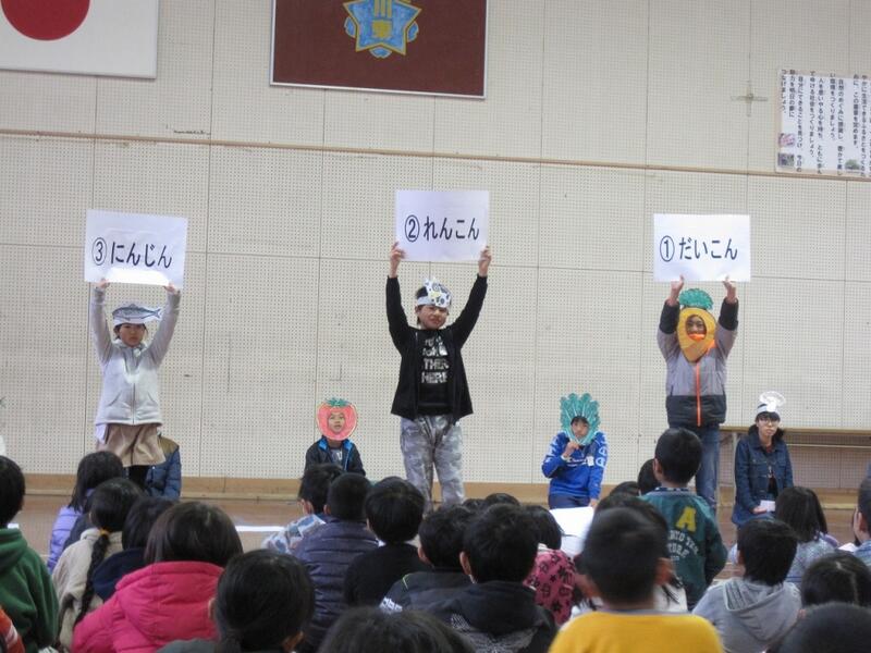 給食委員会の子どもたちが、食の大切さについて発表しました。