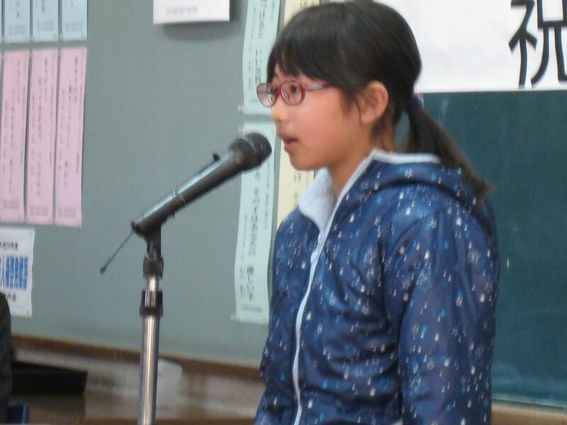 平川綾香さんは「6年間で学んだこと」、太田美花さんは「川東のきずな」という題で発表しました。二人とも堂々としっかりと立派に発表できました。
