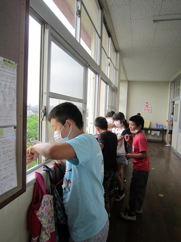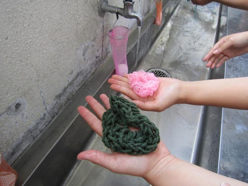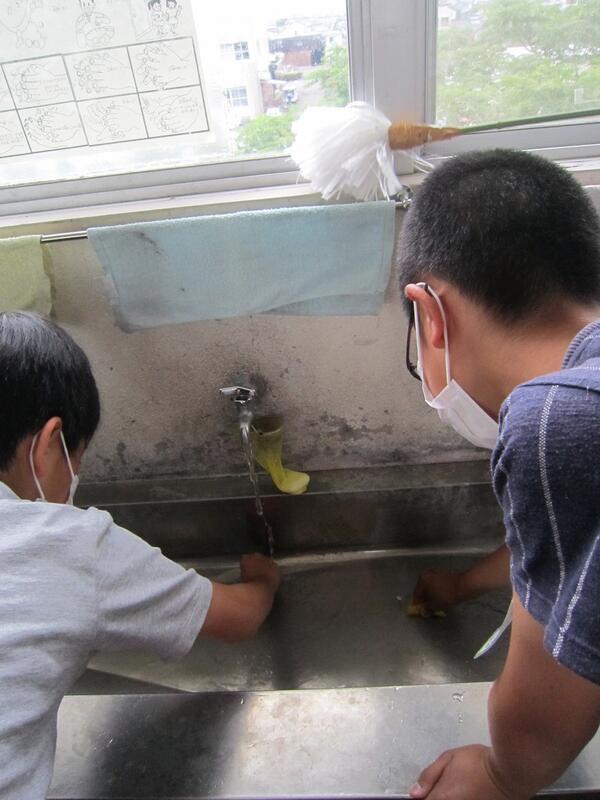 学習の仕上げは、それぞれが家で作ってきた手作りの掃除用具で教室をきれいにすることでした。すみずみをそうじする棒や、アクリルたわしなどを使って、普段の清掃時間にできない部分をピカピカにしてくれました。「家でも実践してみました。」「家庭科の宿題(掃除用具作り)が家でも役に立っています。」という嬉しい声も聞こえています。