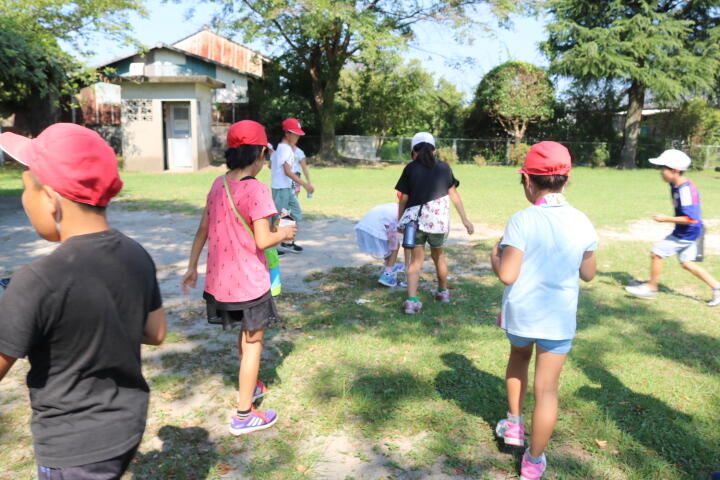 7月19日(木)、4年生が乙戸神社と原口公園のゴミ拾いに行きました。前日に乙戸神社で六月灯が行われました。それで、4年生はまつりの後の神社や公園をきれいにしようとゴミ拾いに取り組みました。思ったよりはごみは少なかったようですが、4年生によって、よりきれいな神社や公園になりました。