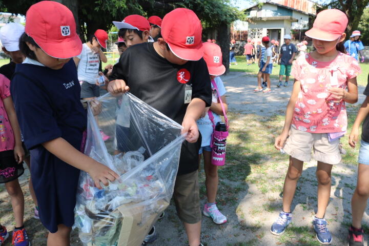 7月19日(木)、4年生が乙戸神社と原口公園のゴミ拾いに行きました。前日に乙戸神社で六月灯が行われました。それで、4年生はまつりの後の神社や公園をきれいにしようとゴミ拾いに取り組みました。思ったよりはごみは少なかったようですが、4年生によって、よりきれいな神社や公園になりました。