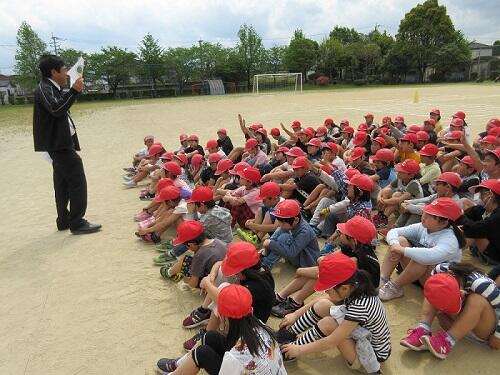 低・中・高学年に分かれて、守るべき交通標識や道路の歩行の仕方、自転車のルールなどを確認しました。また、横断歩道の渡り方については実践形式で確認を行いました。