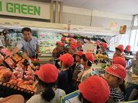 身近な地域のスーパーでの、ものを売るための工夫や食材の仕入れ方などについて、実際の商品を使って詳しく教えていただきました。普段なら入ることのできない裏側まで案内してくださり、子どもたちの質問も尽きませんでした。
