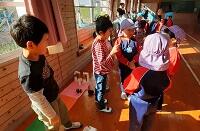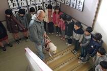 盲導犬とその使用者の方をお招きし、日常生活のことから、街で盲導犬を見かけた際の対応など様々なことをお聞きし、学習しました。国語科で盲導犬について学習している3年生にとって、これからの学習における有意義な時間となりました。