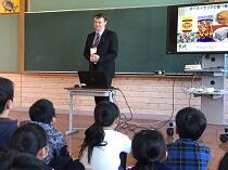 郷土学習のまとめとして、都城の郷土料理について発表を行った後、中国とオーストラリアの国際交流員の方に、それぞれの国の食べ物や文化などについて紹介していただきました。子どもたちが異文化に触れる貴重な機会になりました。