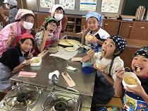 自分たちで育てたさつまいもを使って、ねったぼを作りました。地域のボランティアの方々と楽しく交流しながら、地元の味に触れるよい機会になりました