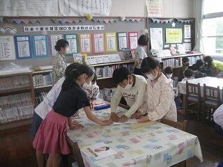 3年生は図書室で、図書館サポーターの先生から本の探し方をゲーム形式で教わりました。これで読みたい本がすぐに探せるようになりますね。みんなでたくさん本を読みましょう。