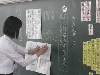 4年生は春の行事について考える学習を行いました。子どもたちからは花見、ひなまつり、ゴールデンウィーク、鯉のぼりなどの考えが出されたそうです。みんなよい姿勢でがんばっていました。