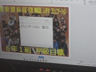 6年生の学級活動の授業の一コマです。みんなの考えを出し合い、学級の目標を決める活動に普通にパソコンが使われています。パソコンを使うことでみんなの考えが一目でわかるようになります。