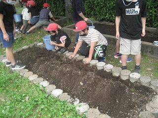 4年生は学校菜園にさつまいもの苗を植えました。土を耕し、畝を作り、苗を植えていきます。途中いろんな虫さん達との遭遇もありながらイモ畑は完成しました。今から収穫が楽しみですね。