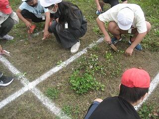 朝、授業が始まる前の運動場で6年生が運動場の草抜きを行ってくれていました。体力テストが始まる前に、みんなが走りやすいようにと自主的に集まってくれたそうです。ありがとうございます。これで気持ちよく走れるね。
