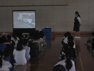 交通安全協会の方々に来ていただき、低・中・高学年ごとに交通安全教室を行いました。道路の安全な歩き方、交差点の渡り方、大きな車に対する注意点など交通安全についていろいろ教えていただきました。川東小は車の交通量の多い道や交差点が多く、注意が必要です。教えていただいたことをしっかり守り、安全な登下校を行います。