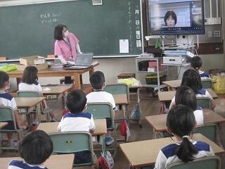 先日、全校朝会を行いました。感染状況が心配な中なので全校児童が集まることはせず、ICTを活用し、リモートでの集会となりました。先生方から「あいさつの大切さ」や「図書室の本のていねいな使い方」について話を行いました。各クラスではモニターを見ながらみんな真剣に話が聞けていたようです。