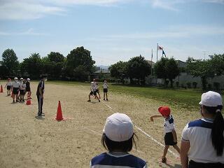 今、川東小では全学年で体力テストを行っています。50m走や持久走、反復横跳びなどいろんな角度から体力を測定していきます。今日は1年生が5年生に手伝ってもらいボール投げの測定を行いました。これからどんどん体力が伸びていくのを楽しみにしています。