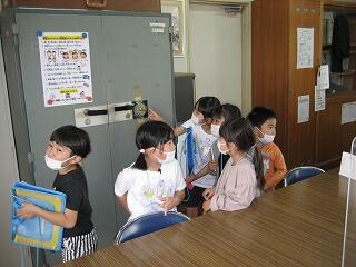 1年生が学校たんけんで校長室に来てくれました。校長室にある金庫やいろいろな置物、たくさんの写真などをとても興味をもって見てくれました。「校長先生はいつも、どんな仕事をしているのですか?」「どうして学校の先生になろうと思ったのですか?」などするどい質問もあり、こちらの方が緊張してしまいました。