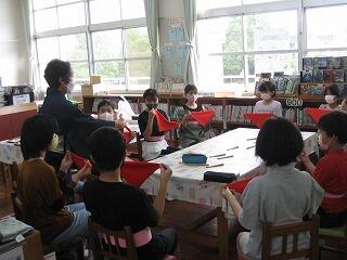 4年生は図工の時間に組紐を使った作品作りに挑戦しました。一人一人がアイデアを活かして、組紐を上手に編んで、船や皿・かご・飾りなどの楽しい作品を作り上げました。