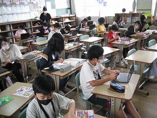 6年生がタイピング(キーボードで文字を入力)の練習をしています。少しずつ継続して練習をしてきて、今ではみんなかなり速く入力ができるようになったそうです(両手を使って入力できるだけでもすごい)。練習に時間は必要だけれど、速く入力できるようになると学習活動がスムーズに行え、その分授業が効率的に進み今では時間的にも得をしているそうです。もっと速くなるのかな?