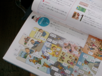 教科書に示されている挿絵と語句(漢字)を使って文章を作っています。