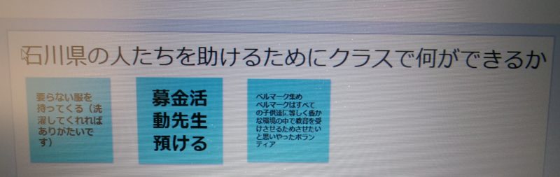 校長用PCも用意してきました物資は難しいという結論3年生が見つめています