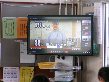 給食委員会の子どもたちが作成した動画を見て、生産者の皆様や、給食センターの皆様等