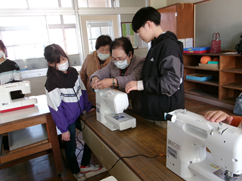 5,6年生家庭科の学習で、ミシンボランティアさんにお世話になっています。