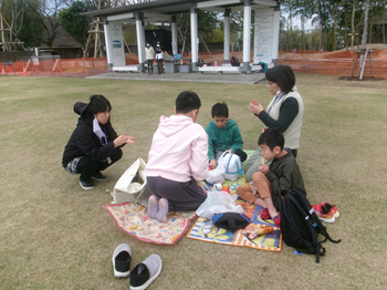 お別れ集会の後は、橋を渡って「霧島ファクトリーガーデン」の広場に