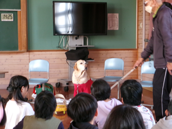 盲導犬について学習しました。 盲導犬は人との信頼関係の中から社会性を学び、人の指示を聞くだけではなく、「何をするべきなのか」自ら考え自主的に行動することができるようになるそうです。 褒めて訓練を行うことで、犬の意欲・自主的な姿勢を最大限に伸ばすことを心掛けるのだそうです。