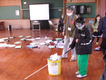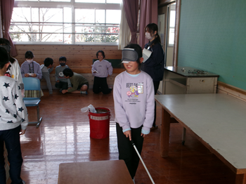 アイマスクをつけての体験も行い、「自分たちに何ができるか」考えてくれていました。