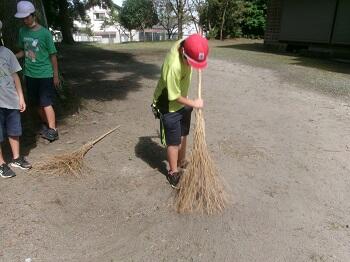 昨夜楽しい時間を過ごした乙戸神社の清掃を、6年生が行わせていただきました。